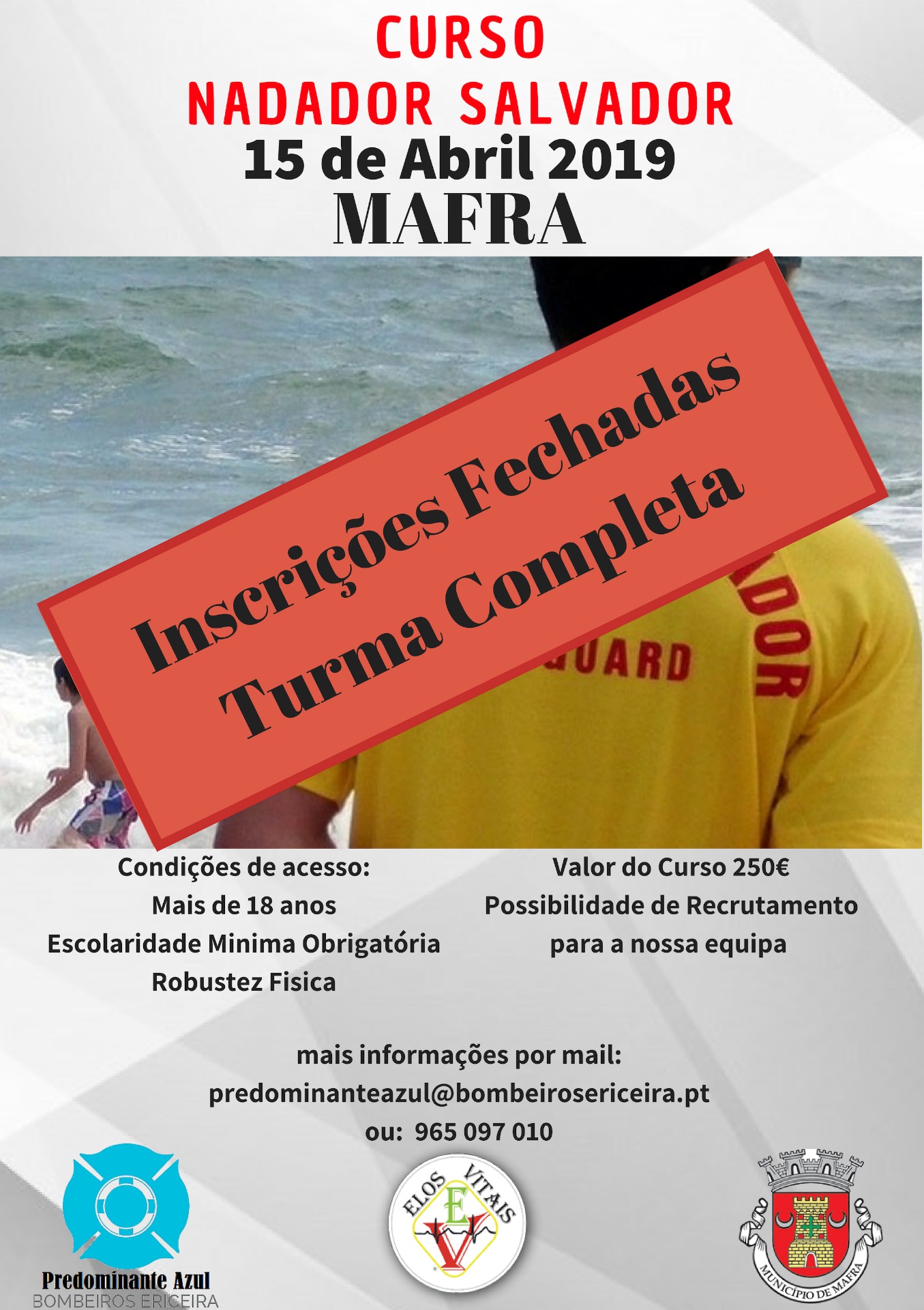 INSCRIÇÕES ENCERRADAS PARA O CURSO 123/19 - MAFRA